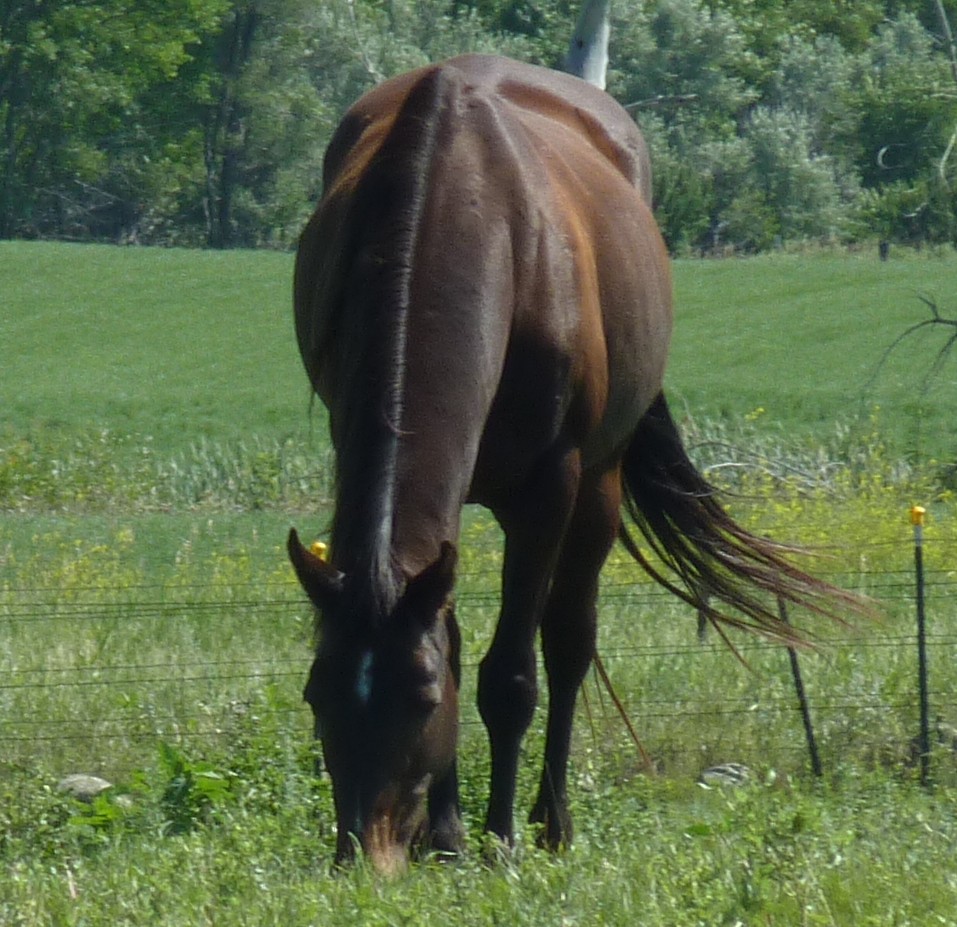 She was out on walkabout when Gampy forgot about her a couple of summers ago when he was driving back and forth getting hay bales from a nearby farm. He called me at work and I will admit to having a little sob session as I mopped my clinic floors.