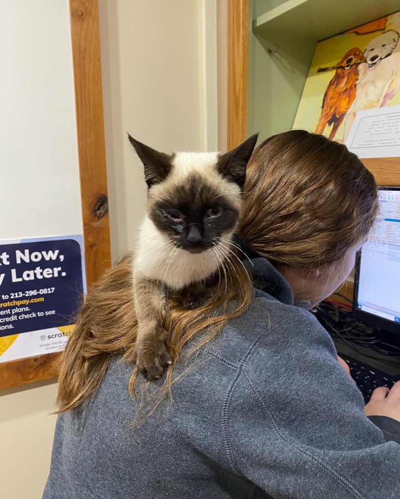 Or, maybe she somehow appreciates already that she’s found herself a couple of Siamese-loving suckers who don’t really have a lot of rules at their house.