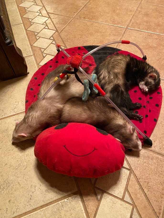 We haven’t met the ferrets yet because once we knew Alistair tested positive for Covid we whisked them off to their other home with Joel, Jeanette, Ivan, Fallon and Panzur. I got to visit with them yesterday on Christmas Day and it was an absolute blast.
