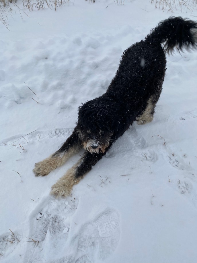 I’m choosing to remain the optimist I always have been (even if it borders on naivete.) I AM in the beautiful mountains with a cute new companion and I’m fortunate enough to have the kick-ass ’96 Ram with the guts and strength to move snow from here to there.