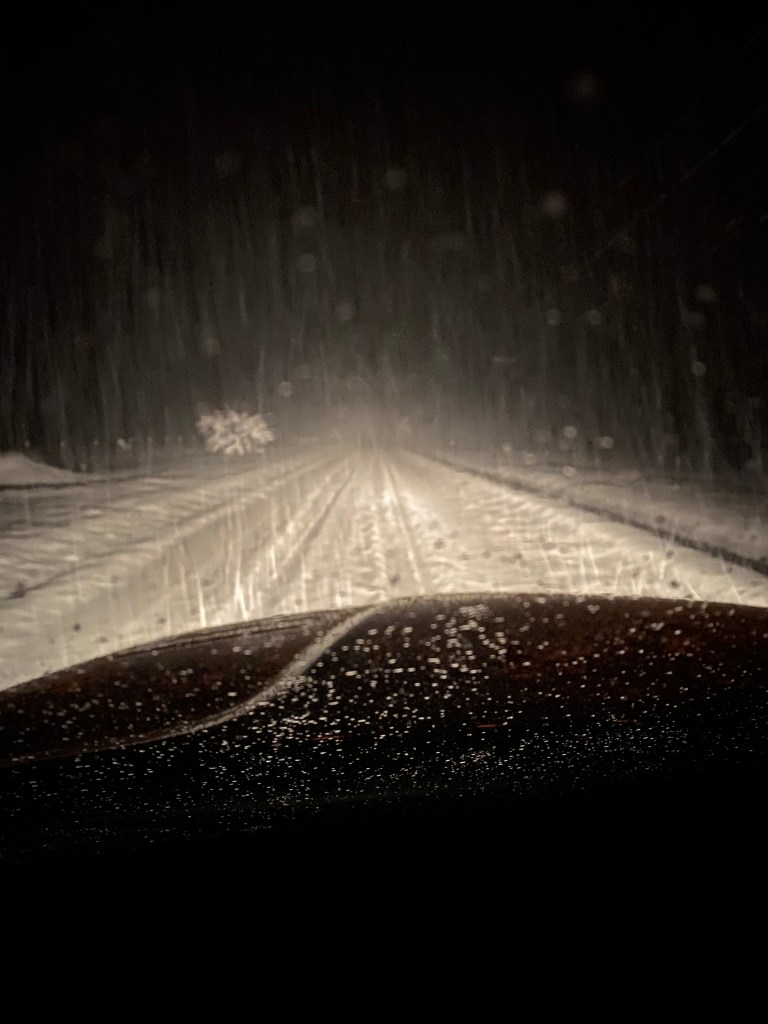 And I drove through the snowy night later than normal to bring her to her new world at the Fyfe Farm.